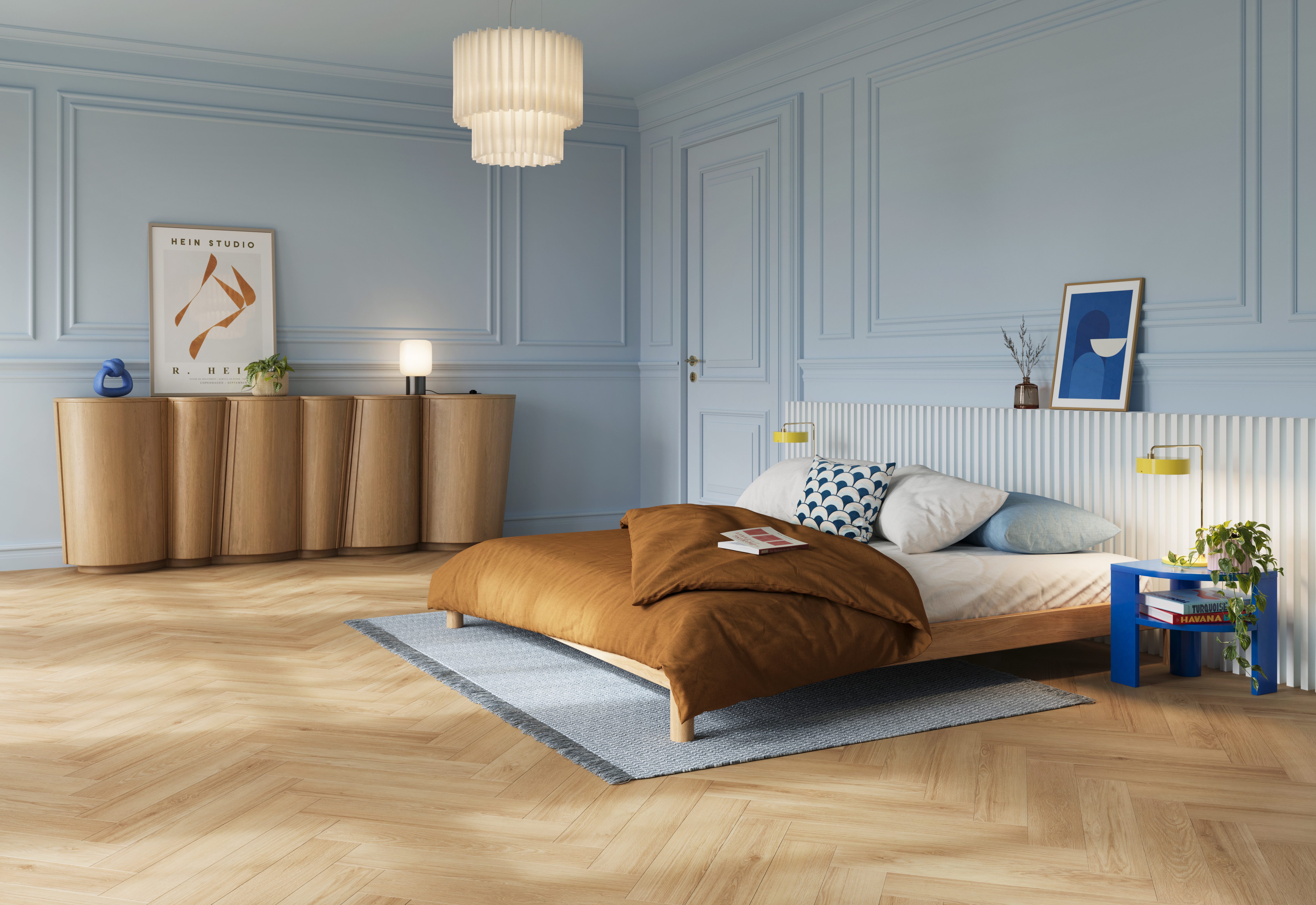 Der innovative Objektboden Designbelag mit Klicksystem und Trittschalldämmung als Fischgrät-Muster Rigid clic- Fischgrät von BerryAlloc