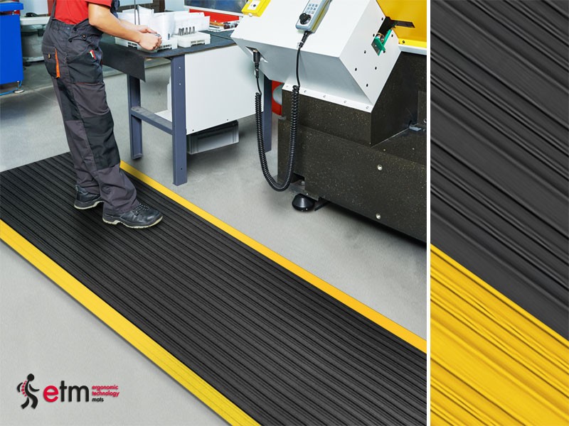 Die Anti-Ermüdungsmatte ist aus widerstandsfähigem Vinyl gefertigt und trotzt auch starker täglicher Beanspruchung. Sie ist mit einer rutschfesten Unterseite versehen, sodass die Arbeitsplatzmatte fest auf dem Boden liegt. Erhältlich ist die antiermüdende Matte in den Farben Schwarz, Grau und in der klassischen, schwarz-gelben Variante. Neben vielen Größen ist die Matte auch als Zuschnitt nach Maß verfügbar. So können nicht nur einzelne Arbeitsplätze, sondern auch ganze Bereiche der Produktion, des Versands oder in Werkstätten mit der Anti-Ermüdungsmatte ausgestattet werden.