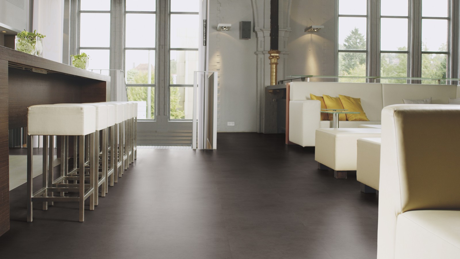 Hochwertiger Bio-Bodenbelag aus ökologischen Bio-Polyurethan in Fliesenformat zum Verkleben