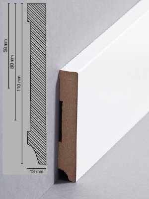 Diese hochwertige Folienummantelte Fussleiste hat eine Stärke von 13mm, eine Höhe von 80mm und hat eine Länge von 2,50m. Sie gehört zu den universell einsetzbaren Sockelleisten und verfügt über eine Kabelkanalfräsung. Das Material der Sockelleiste besteht aus einem hochwertigen MDF-Kern, der von einer Grundfolie mit weißen Farbton ummantelt ist und Ihnen bei Bedarf eine individuelle Farbgebung ermöglicht. Das eröffnet unerschöpfliche Gestaltungsmöglichkeiten und befriedigt jeden noch so ausgefallenen Geschmack.| Eigenschaften | |||