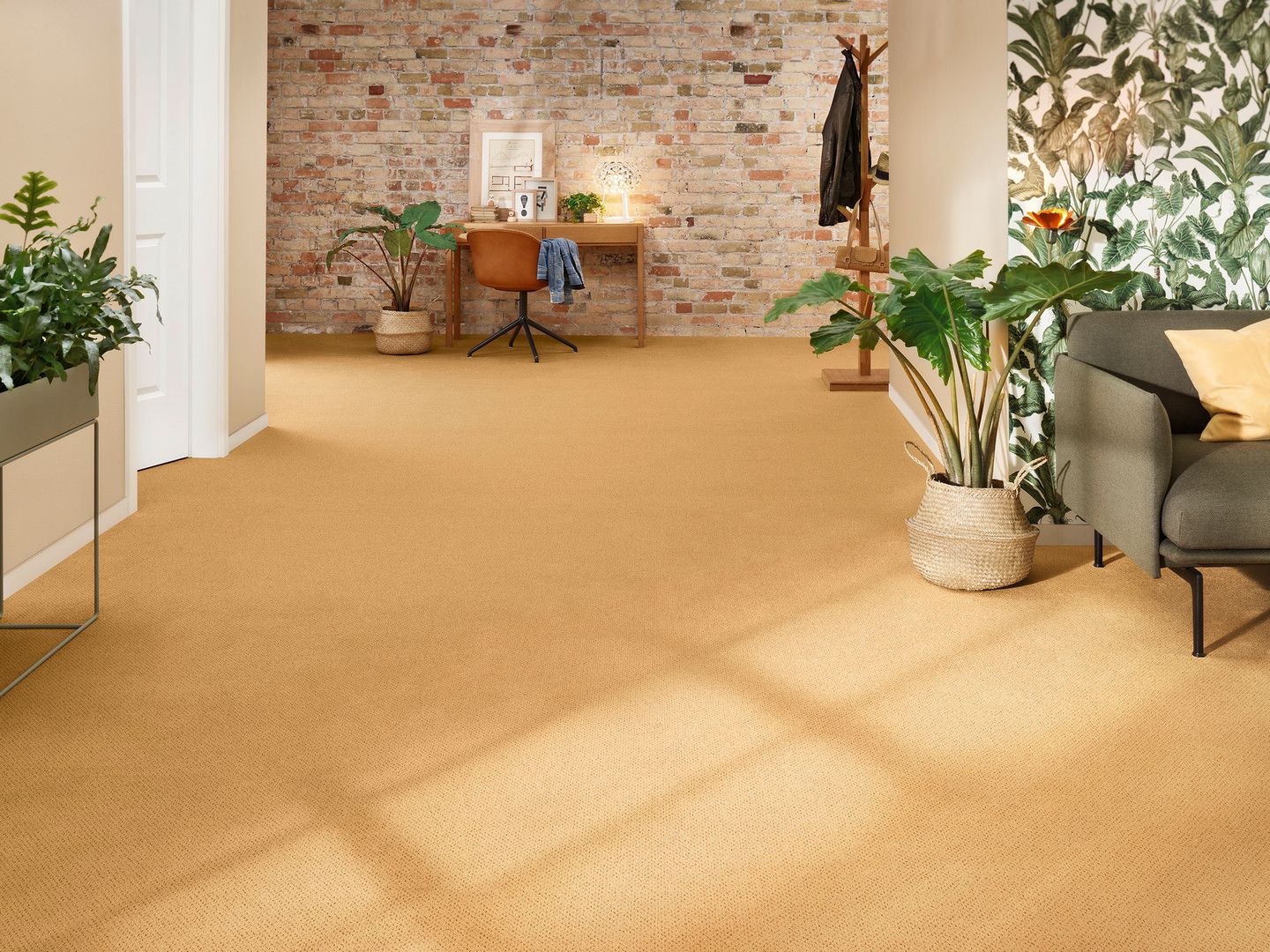 Dieser höchst strapazierfähige Bodenbelag ist zu hundert Prozent die richtige Wahl, auch im Objektbereich, hier im Dekor Maisgelb im Farbton mittel. Mit seinem Effektfaden in Zickzackform sorgt er für eine lebendige Optik in jedem Raum. Fordern Sie gleich Muster oder ein individuelles Angebot für den Vorwerk Best of Living Superior 1069 in Maisgelb im Farbton mittel an - 2F51.